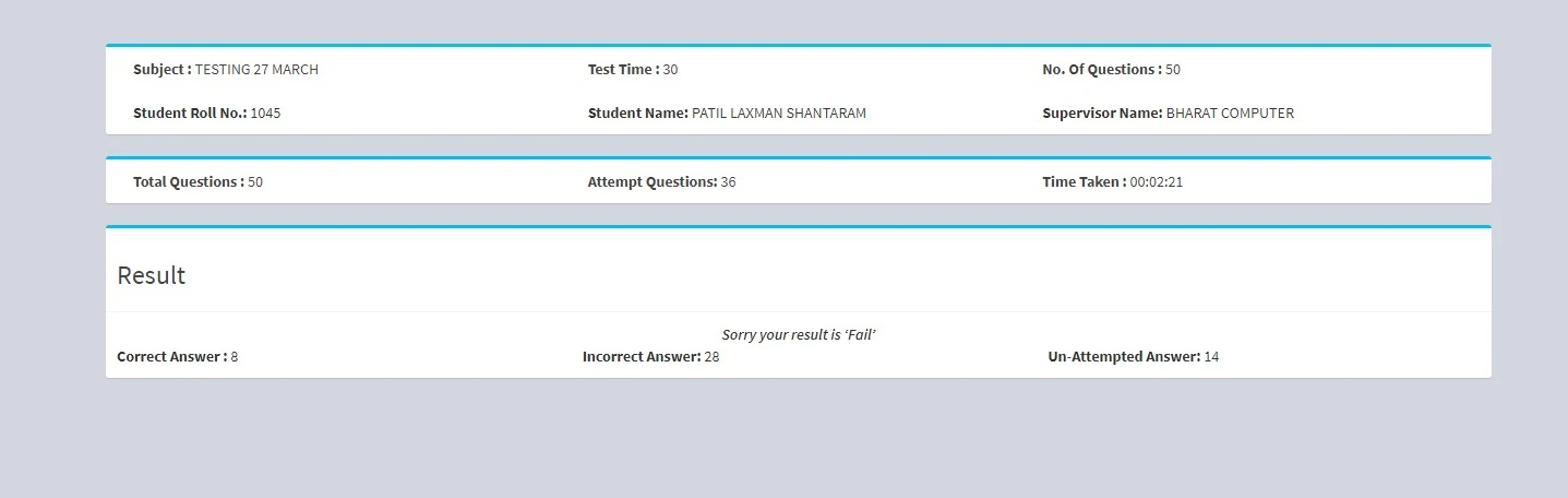 An online examination system developed in Laravel. Provision for adding teachers/students is made using modules. Visual questions with multiple answers provision is included.