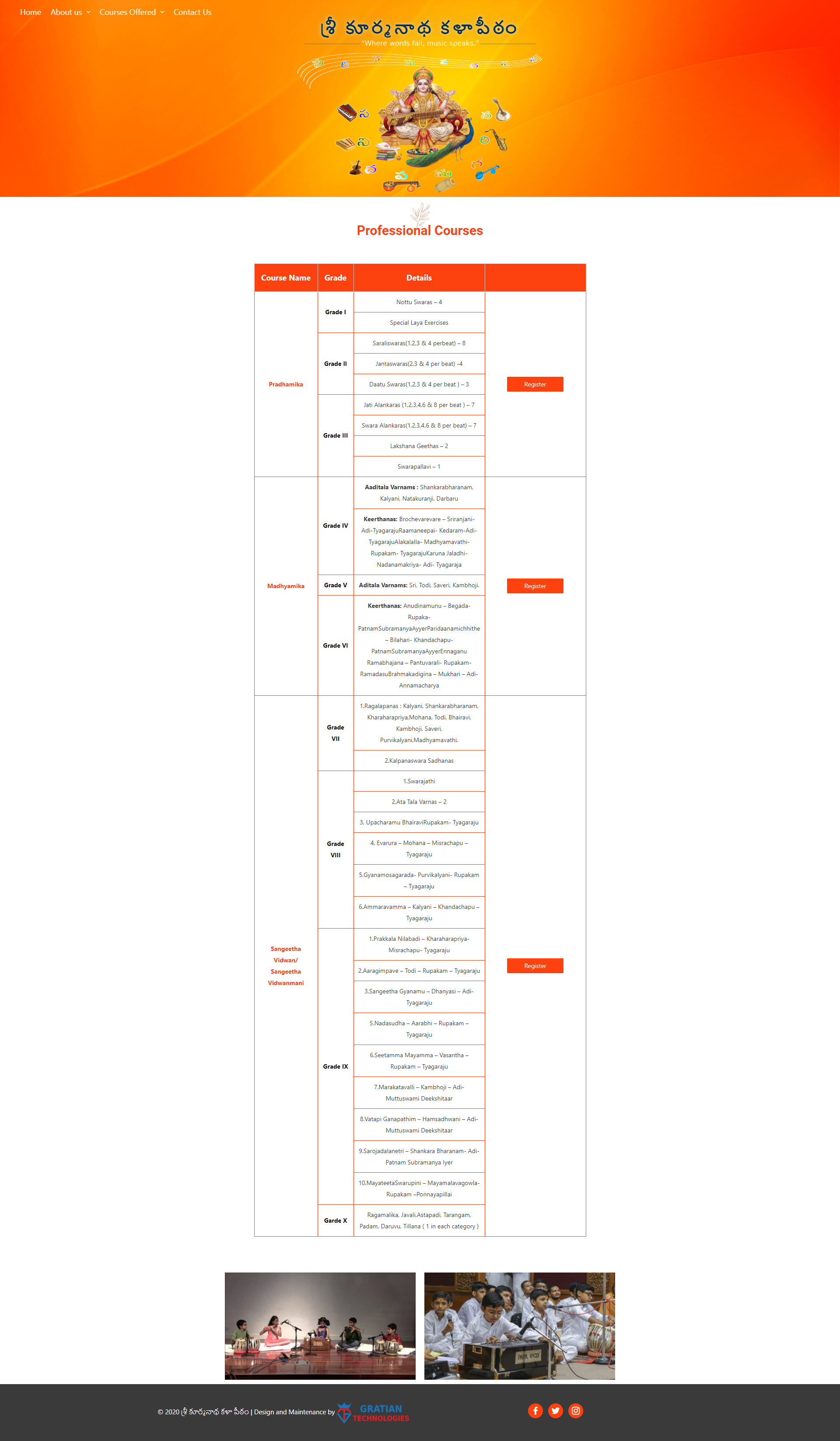 A very simple website showcasing Music School courses was built with vibrant and eye catching colors. Website was built within few days at a very minimal cost.